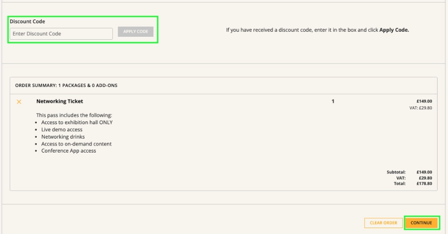 Our first option is our Networking Ticket. With this, you get two full days of networking along with access to both the exhibition hall and two stages, the Insights Stage and the Innovation Stage. We also host a networking drinks session, which is yours to attend. This networking ticket also grants you access to live demos, on-demand content, and our conference app to help you schedule your day.